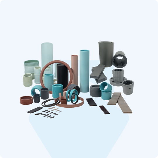 Композиты обладают высокими антифрикционными свойствами, устойчивы к воздействию влаги, солёной воды, масел и химических веществ. Детали могут изготавливаться по стандартным типоразмерам или индивидуальным чертежам, с учётом конкретных нагрузок и условий эксплуатации.